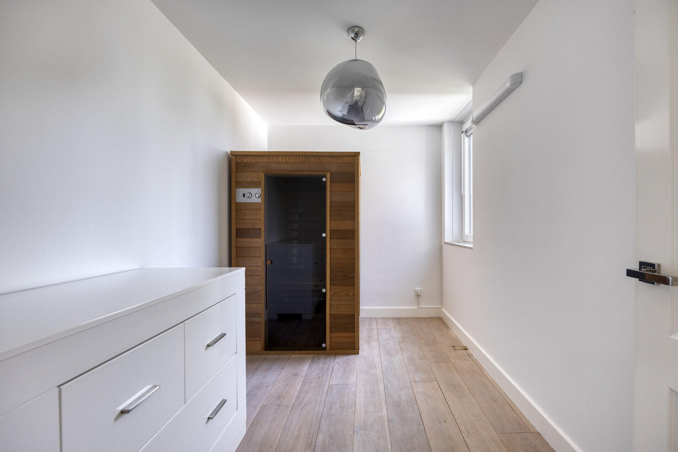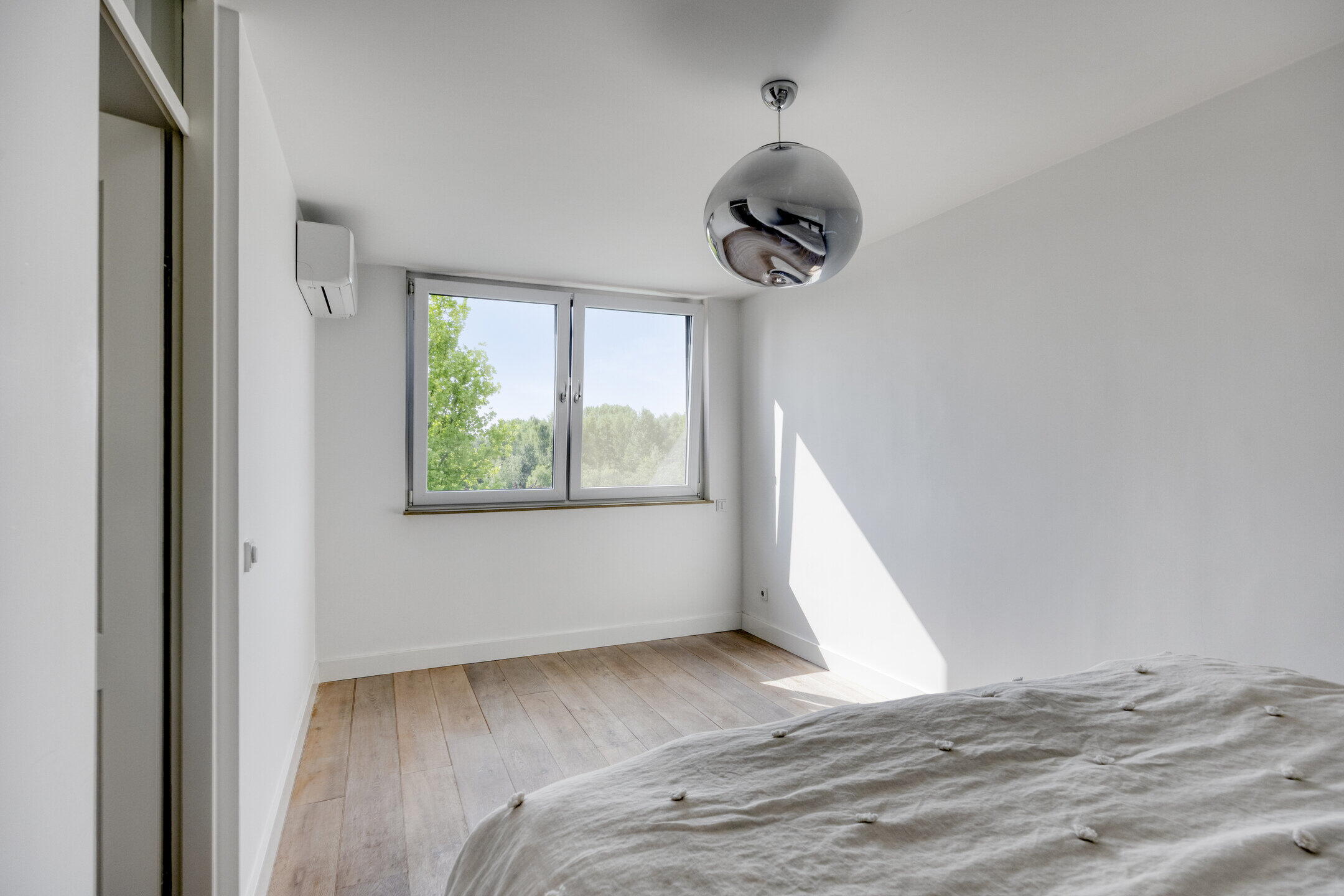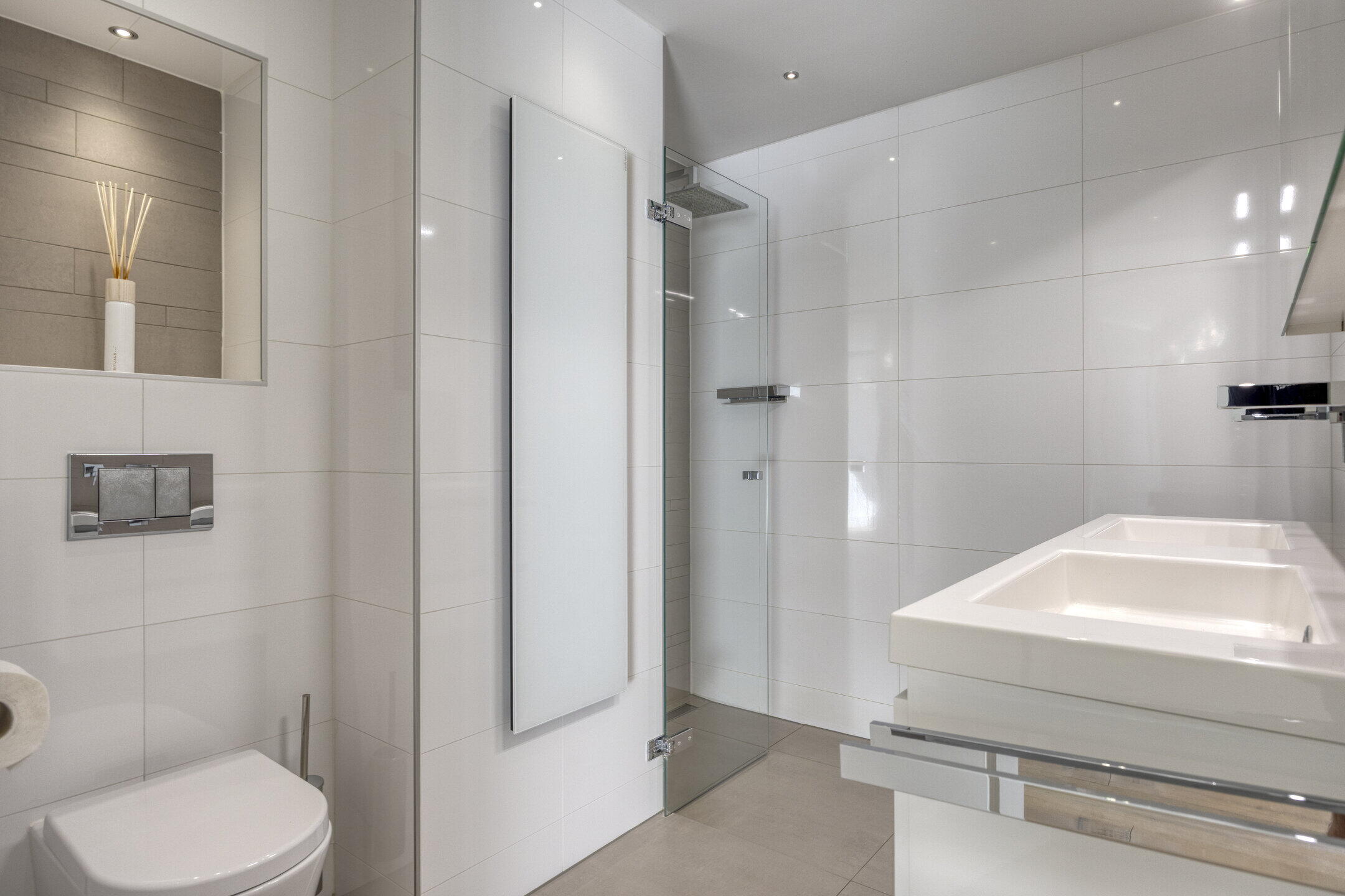 De tweede verdieping biedt drie ruime slaapkamers, allemaal met dezelfde verzorgde afwerking. De kunststof kozijnen en rolluiken op deze verdieping zorgen voor extra comfort en isolatie. De master bedroom is extra comfortabel dankzij de airconditioning (uit te breiden met een derde unit). De moderne badkamer is volledig betegeld en voorzien van een dubbele wastafel, toilet, infraroodverwarming en inloopdouche.